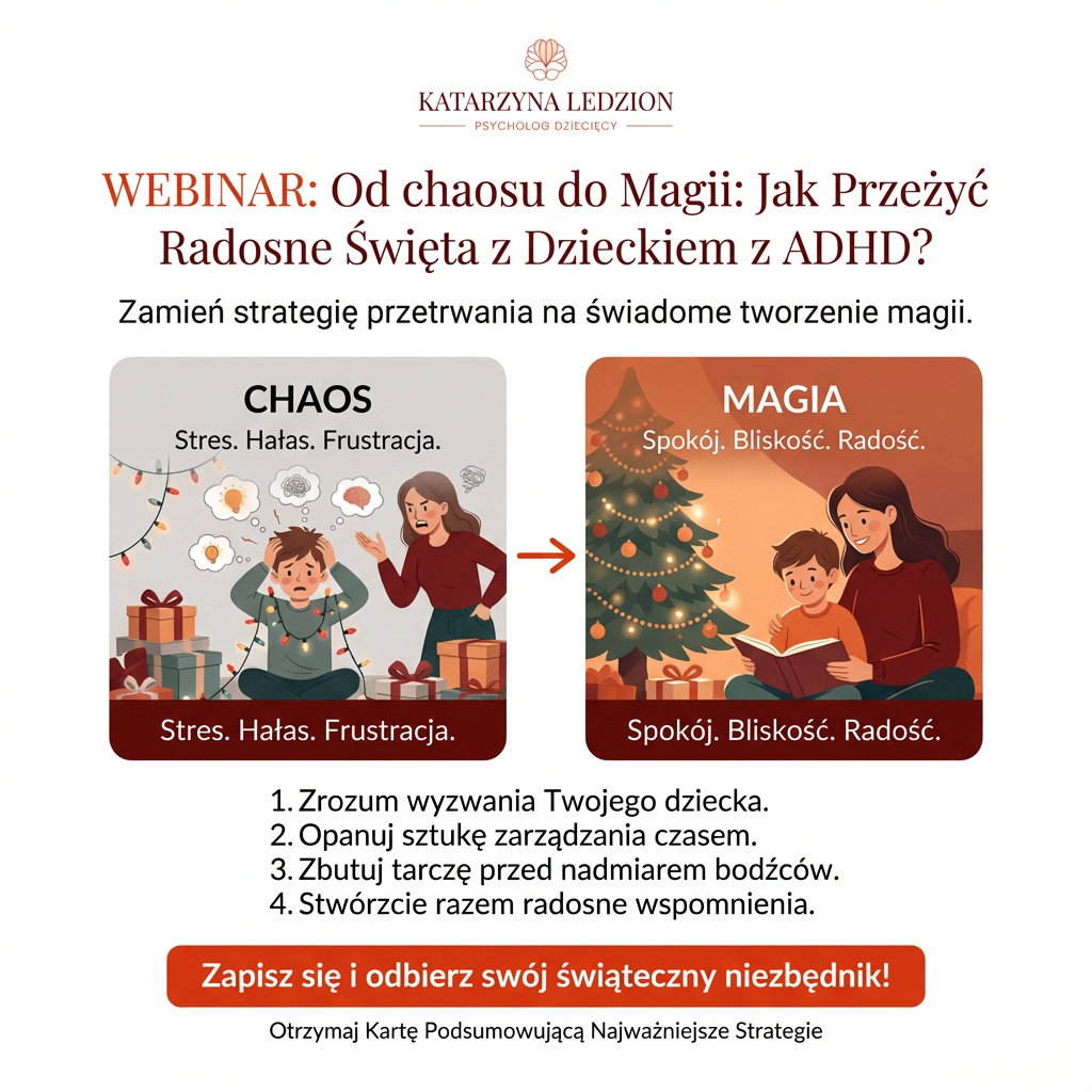 Święta to czas, który w naszych wspomnieniach powinien lśnić blaskiem choinkowych lampek i pachnieć piernikiem. To czas magii, bliskości i radości. Ale dla rodziców dzieci z ADHD, ten wyidealizowany obraz często ustępuje miejsca rzeczywistości pełnej chaosu, napięcia i wyczerpania.